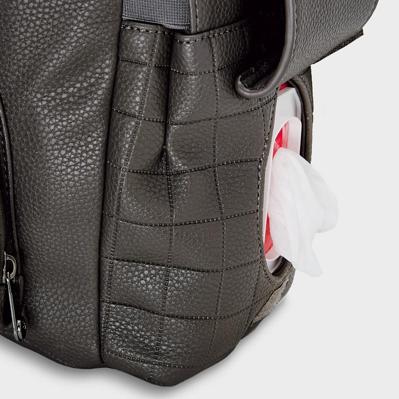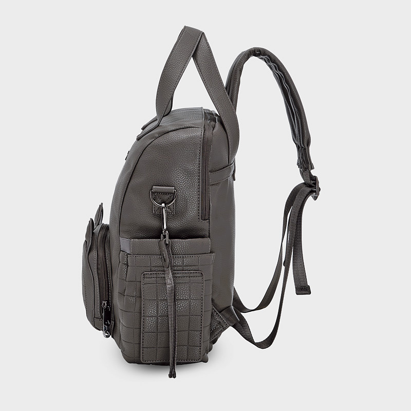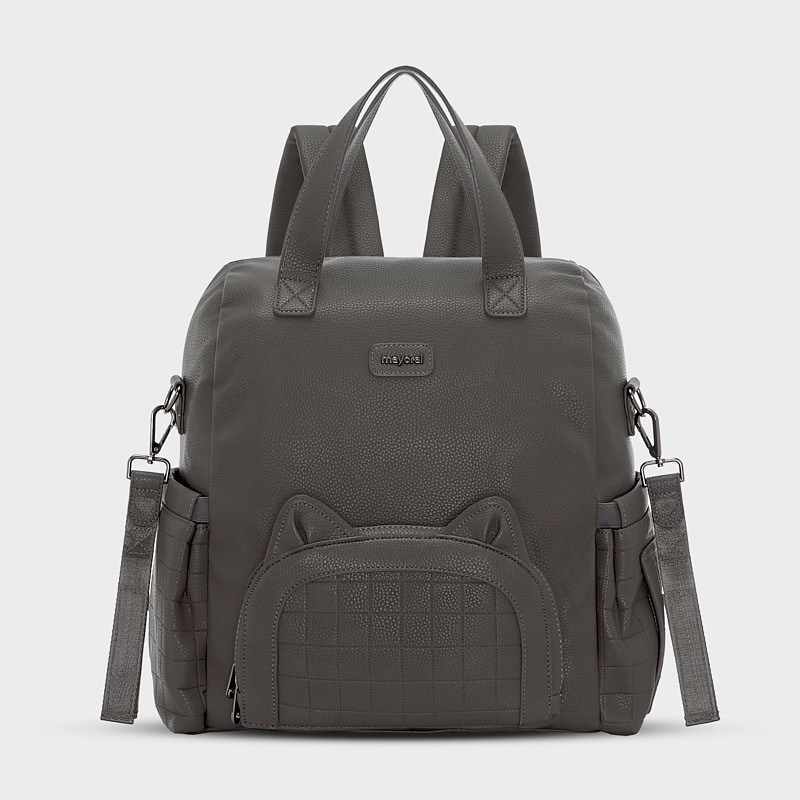 Comodo e originale zainetto per portare con te tutti gli accessori del tuo/a piccolo/a. Chiusura con cerniera Parte esterna in similpelle. Con manici rimovibili da poter appendere al passeggino. Tasca funzionale nella parte anteriore.